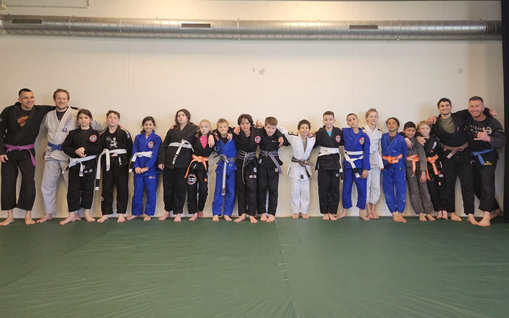 Braziliaans Jiu Jitsu is een fantastische en leuke manier om kinderen te laten bewegen terwijl ze ingewikkelde fysieke, sociale en mentale vaardigheden leren, waar ze de rest van hun leven baat bij zullen hebben. Op fysiek niveau dagen wij kinderen uit om nieuwe manieren van bewegen te ontdekken en aan te leren, daar comfortabel mee te raken en uiteindelijk zelfverzekerd te worden in de uitvoering. Onze lessen zijn in groepsverband en bijna alle oefeningen zijn in duo’s. Communicatie en sociale interactie is dus groot. Kinderen leren naast de sport gerelateerde oefeningen en bewegingen hun eigen grenzen (en die van hun teamgenoten) kennen en respecteren. Ons doel is om tijdens de lessen een vriendelijke, veilige atmosfeer te creëren waarin onze leerlingen niet alleen alles leren over Braziliaans Jiu Jitsu, maar ook discipline, respect en integriteit.